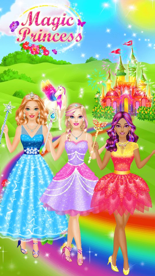 MAGIC PRINCESS DRESS UP AND MAKEUP GAME FOR GIRLS Magic Princess is a colorful dress up and makeup game for girls who love royal fashion, beauty styling, and fairy tale creativity. Enter a magical kingdom and help your princess shine with relaxing spa care, glamorous makeup, and sparkling outfits. WHY PLAY MAGIC PRINCESS • 3 complete makeover stages: Facial Spa, Makeup Salon, and Dress Up • Bright princess hairstyles, glitter cosmetics, and creative beauty combinations • Sparkly dresses, capes, matching shoes, and elegant royal accessories • Choose from 10 magical unicorns and horses to accompany your princess • Pick one of 5 butterflies to fly around your princess after styling • Select from 3 vibrant fairy tale backgrounds for photo-ready final looks If you enjoy princess dress up games, makeup salon games, and fairy tale fashion games for girls, Magic Princess offers quick sessions and endless style combinations in one app. HOW TO PLAY Begin with facial spa treatments to prepare your princess skin. Move to makeup for eye shadow, lipstick, and blush, then finish in dress up by combining dresses, capes, shoes, accessories, unicorn partners, butterflies, and your favorite fantasy background.